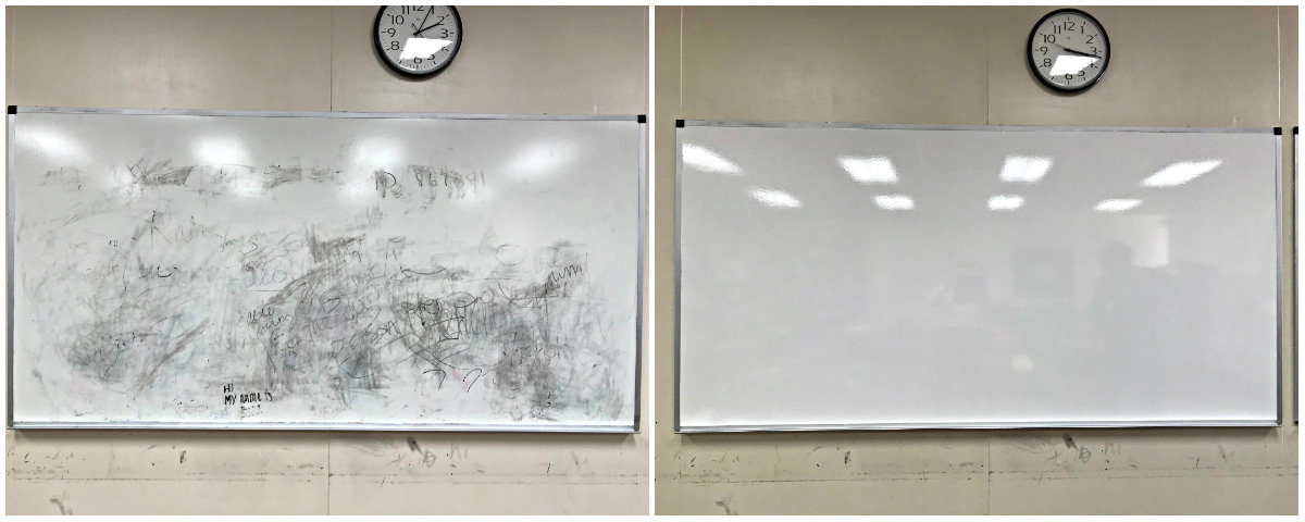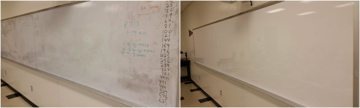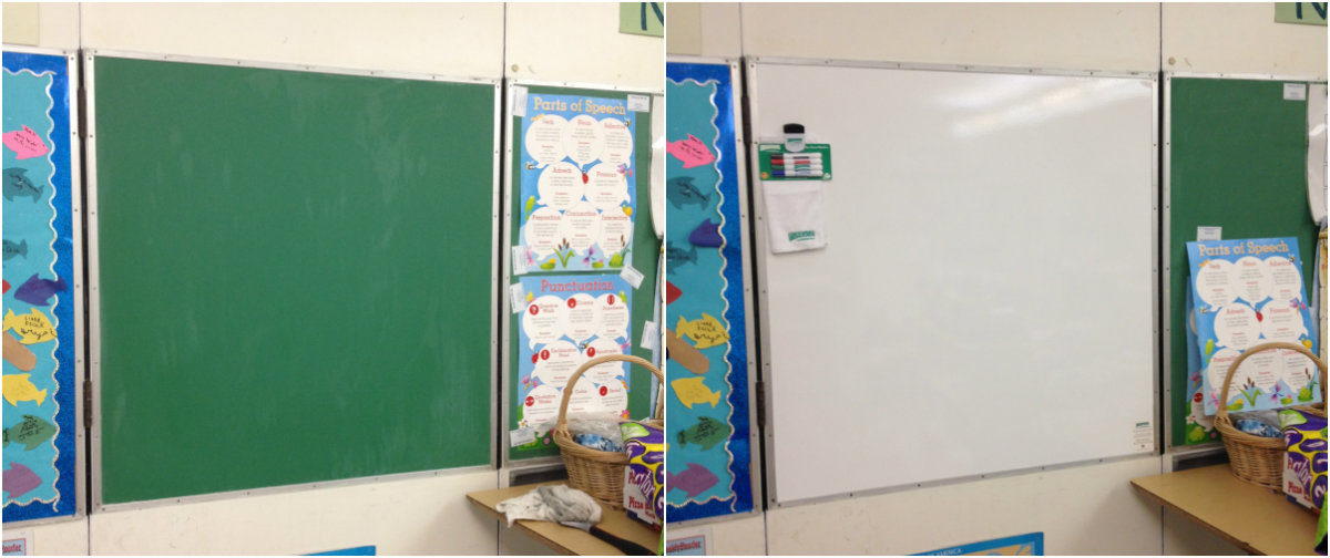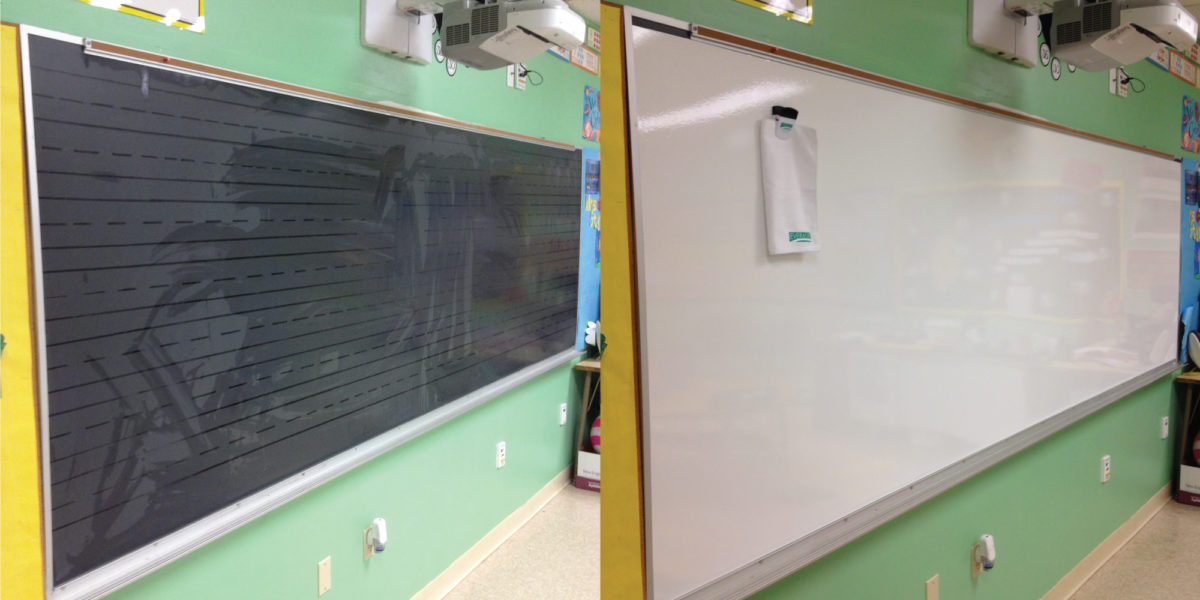 Everase specializes in the resurfacing of old chalkboards and stained whiteboards, converting them into high quality Everase Whiteboards!