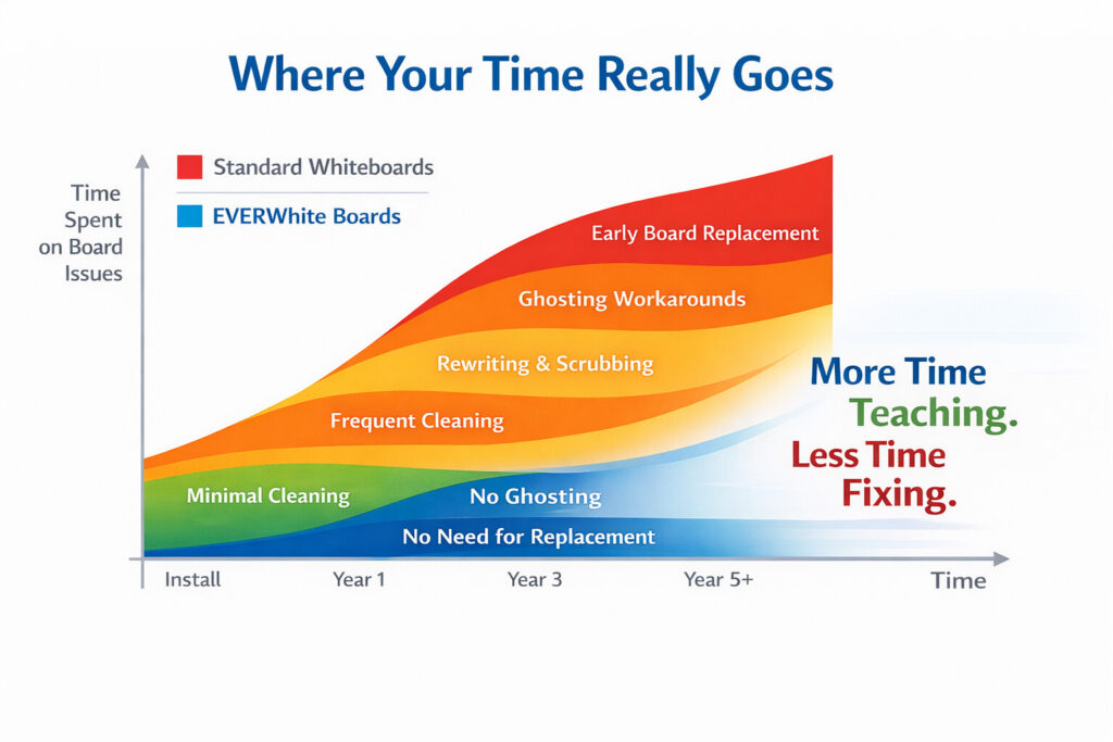 EVERWhite whiteboards are engineered to eliminate the time drains that come with lower-quality surfaces—not manage them, not work around them, but remove them entirely.