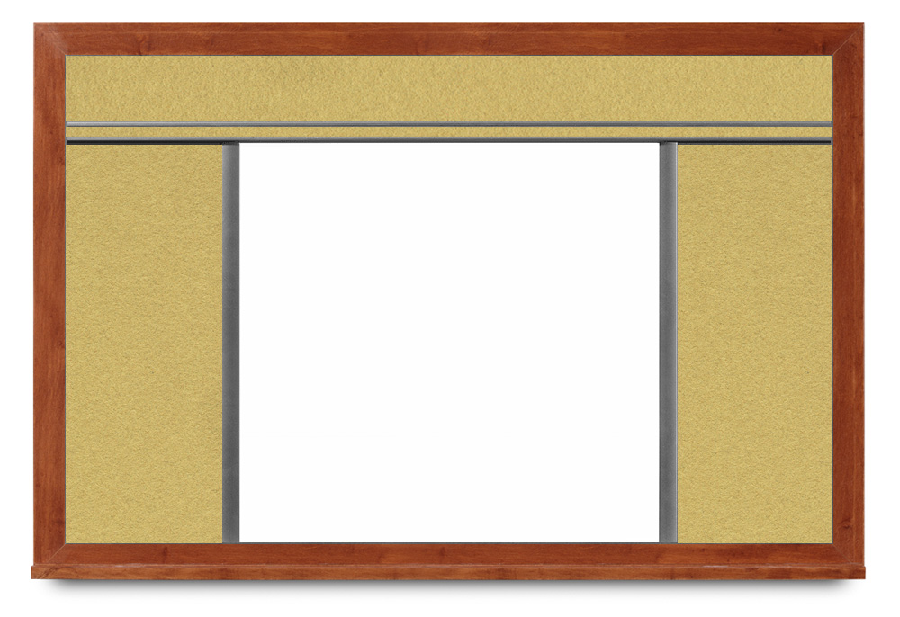 Magnetic whiteboards with cork panels across top and both sides; magnetic dry erase surface that won’t stain. Wide cherry wood frame. Cork available in 15 colors. See the chart in the gallery to the left for cork:whiteboard dimensions for each size board of this style.