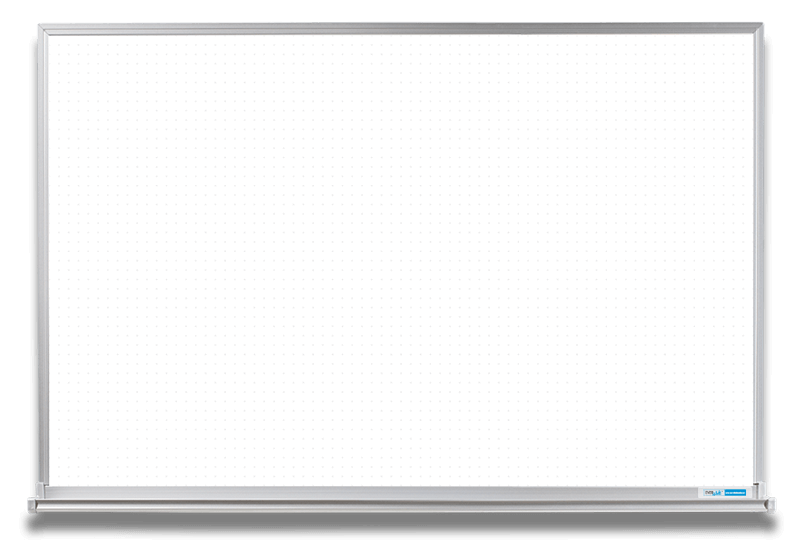 Whiteboard with 1-inch dot pattern ghosted below the magnetic surface. The ghost dots guide drawing, writing and designing, but are barely visible to people viewing the whiteboard presentation. The dry erase surface board is easy to clean and guaranteed not to stain.