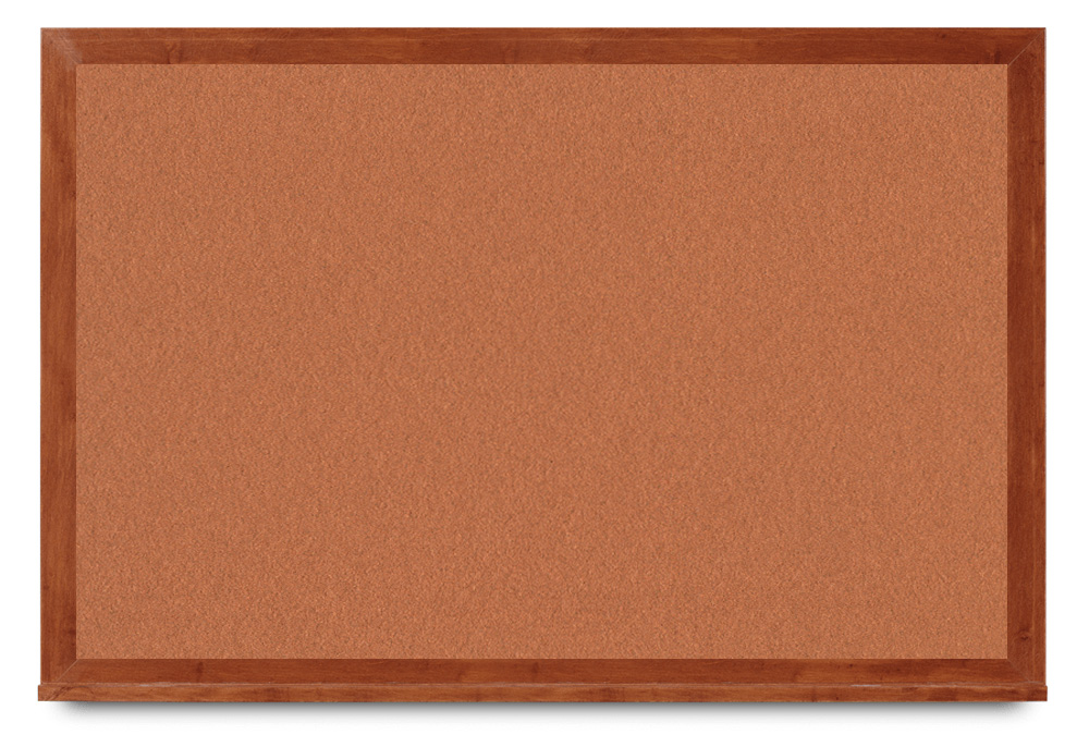 Cork tack board with 1-7/8″ wide cherry wood frame. Cork is available in 15 colors.