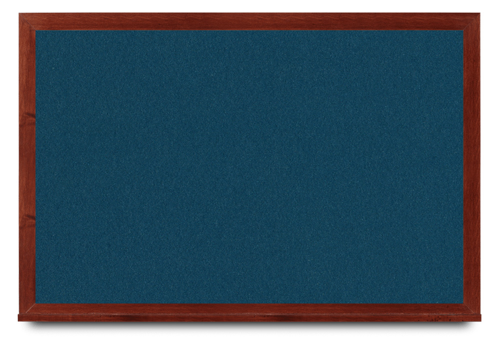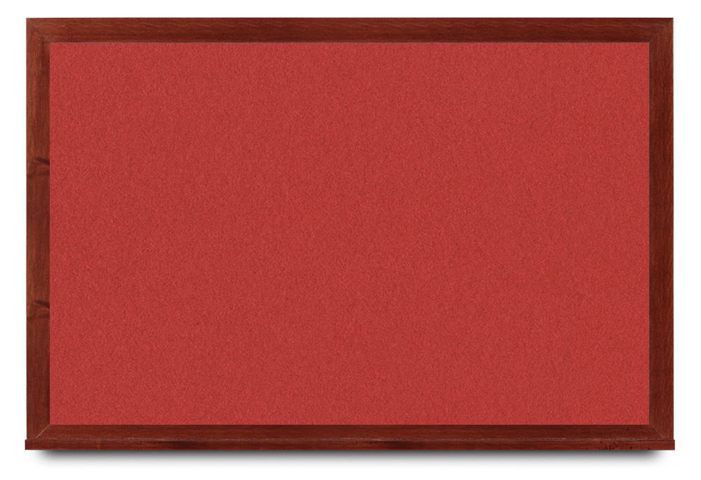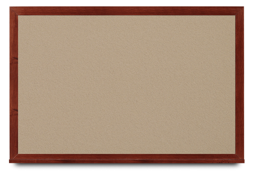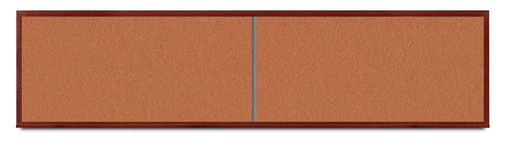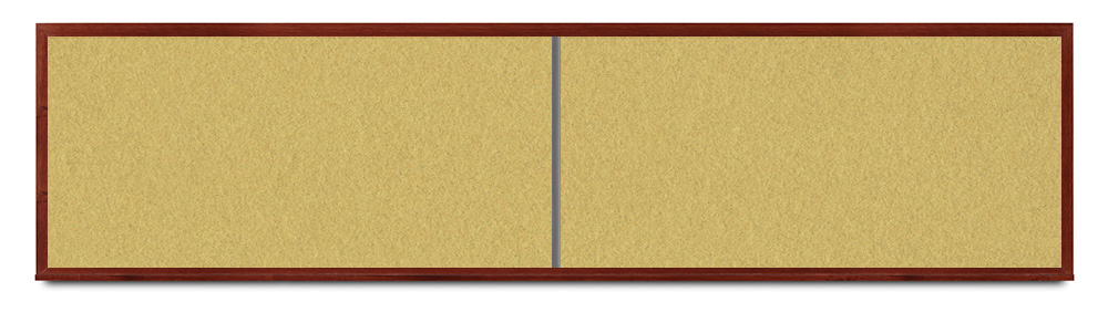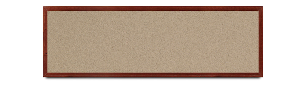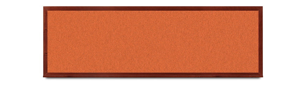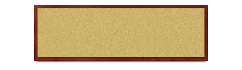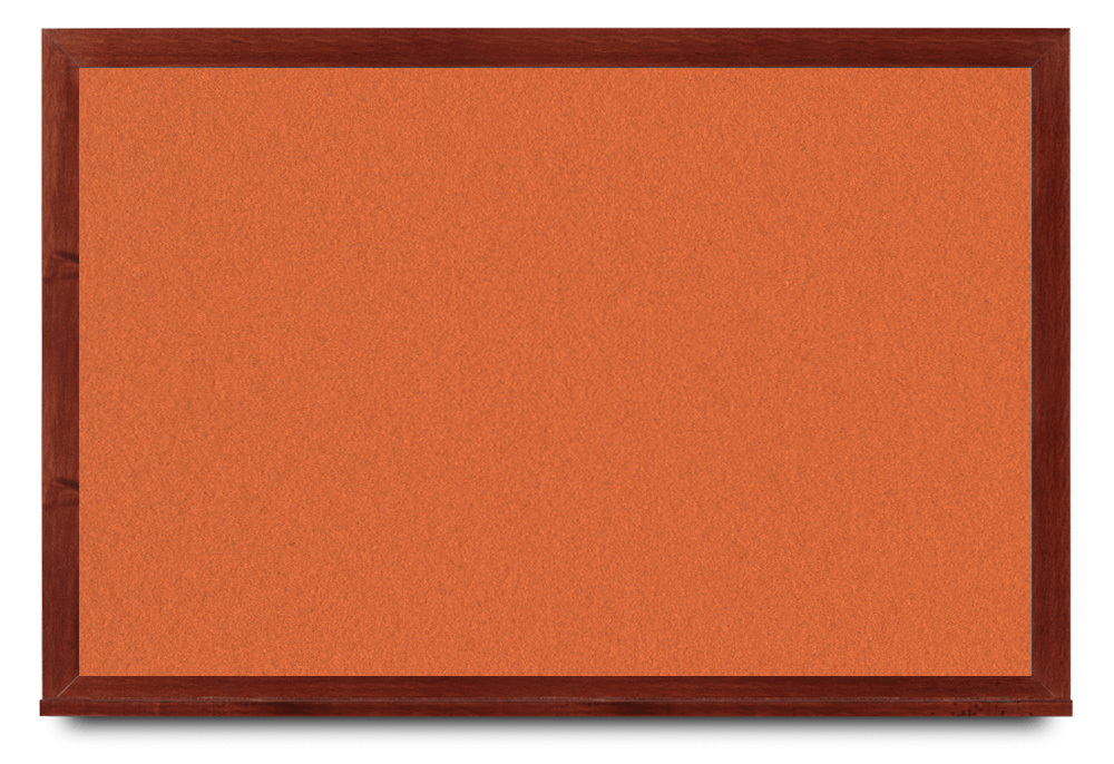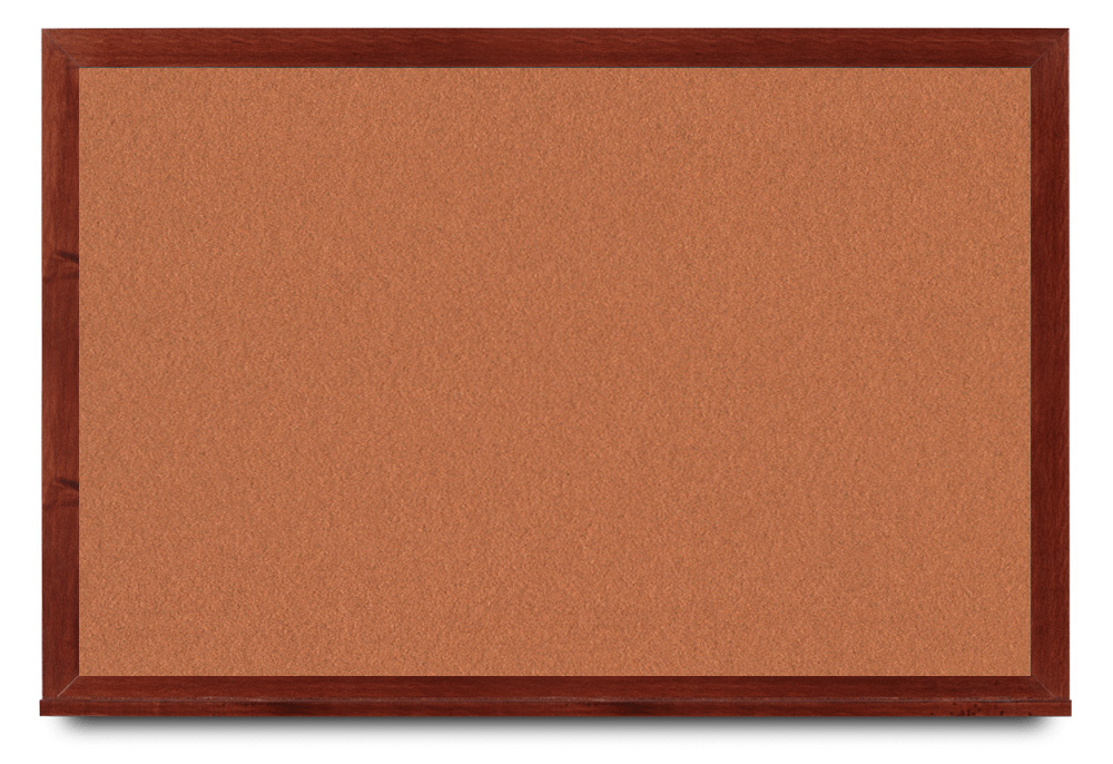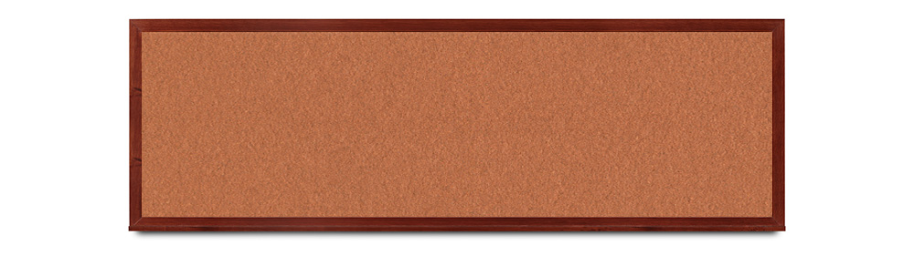 Wide mahogany wood frame around tack board with high-density cork. These cork bulletin boards are available in 15 sizes and with 15 cork color options.