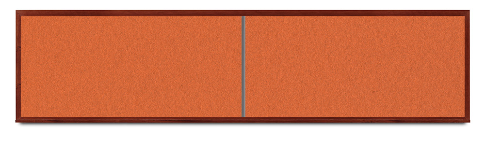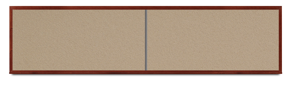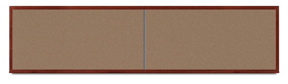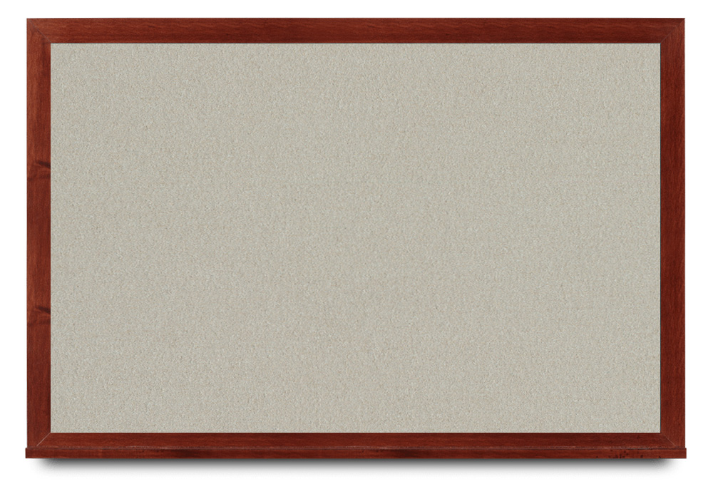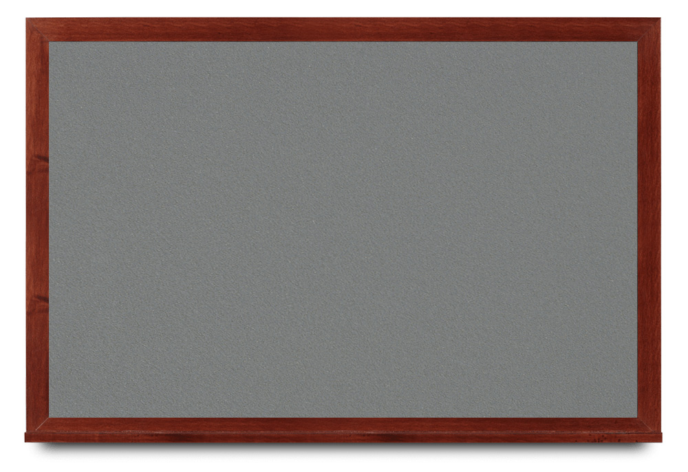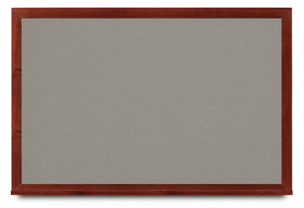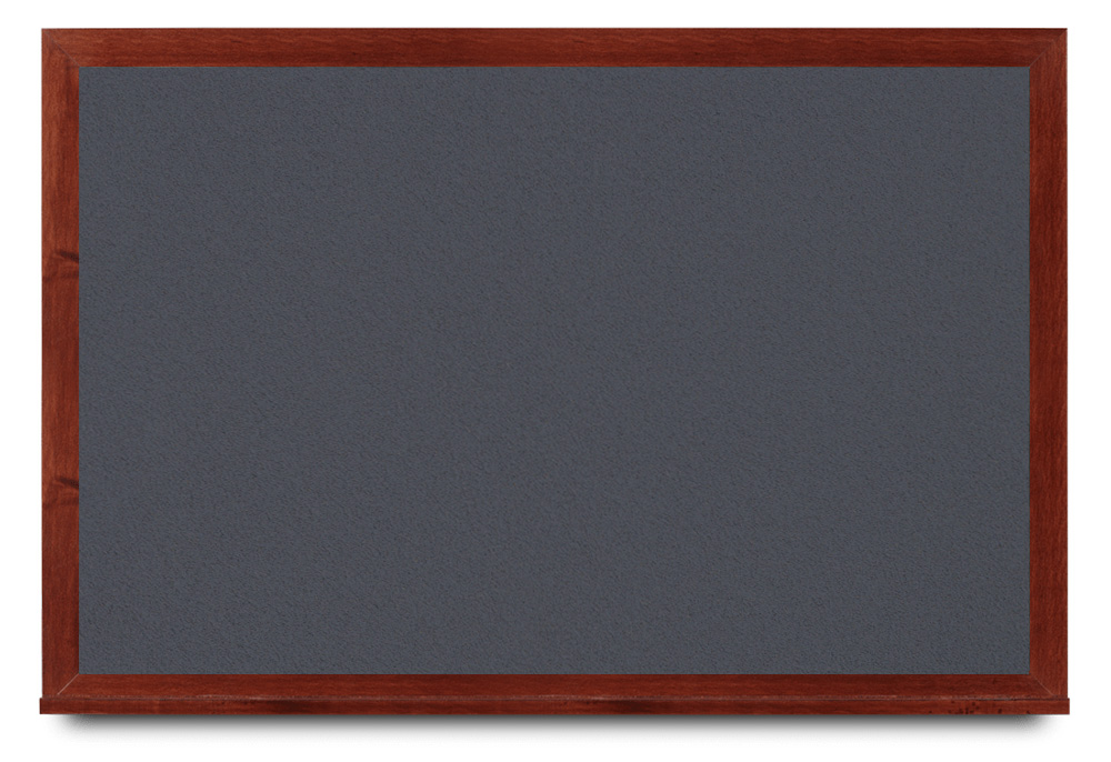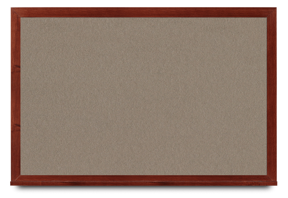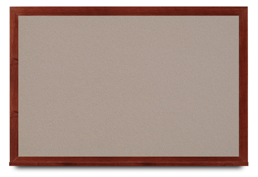 Wide mahogany wood frame around tack board with high-density cork. These cork bulletin boards are available in 15 sizes and with 15 cork color options.