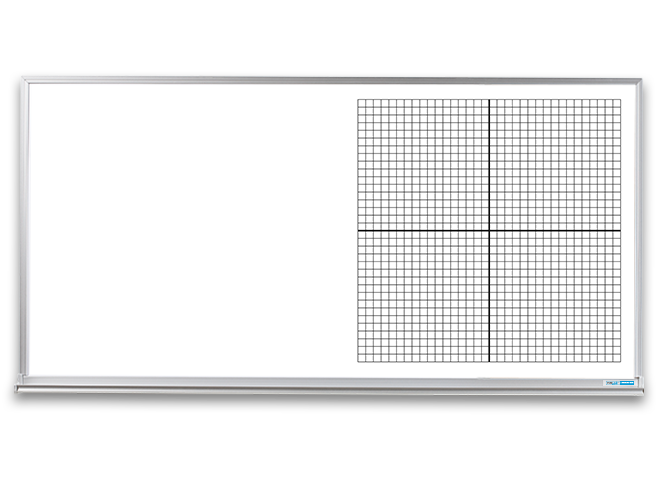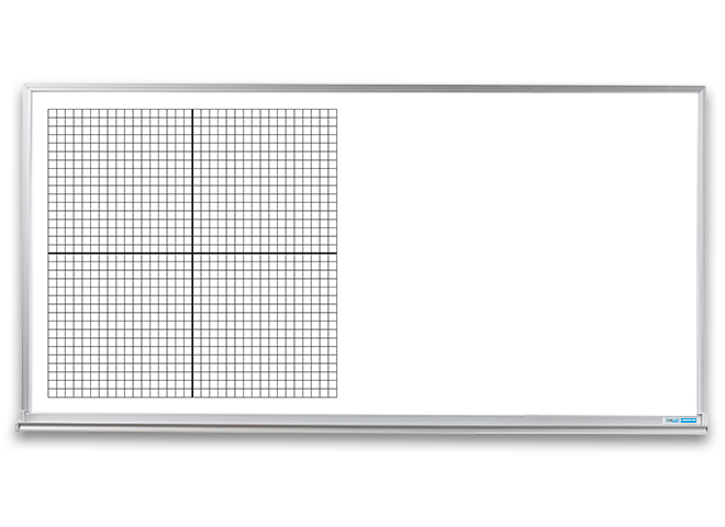 Aluminum frame around a whiteboard with rectangular coordinates printed below magnetic dry erase surface. The graphic is only available in 4×4-foot dimensions but can be printed on a 4×4-foot section of a larger whiteboard.